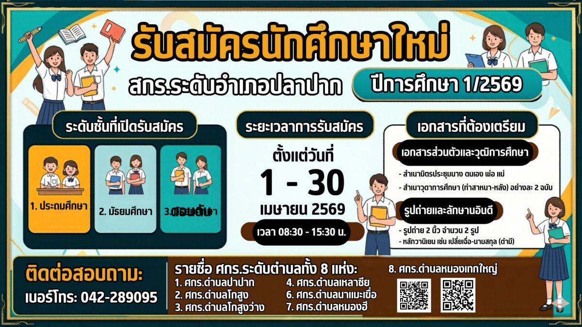 สกร.ระดับอำเภอปลาปาก รับสมัครนักศึกษา ปีการศึกษา 1/2569