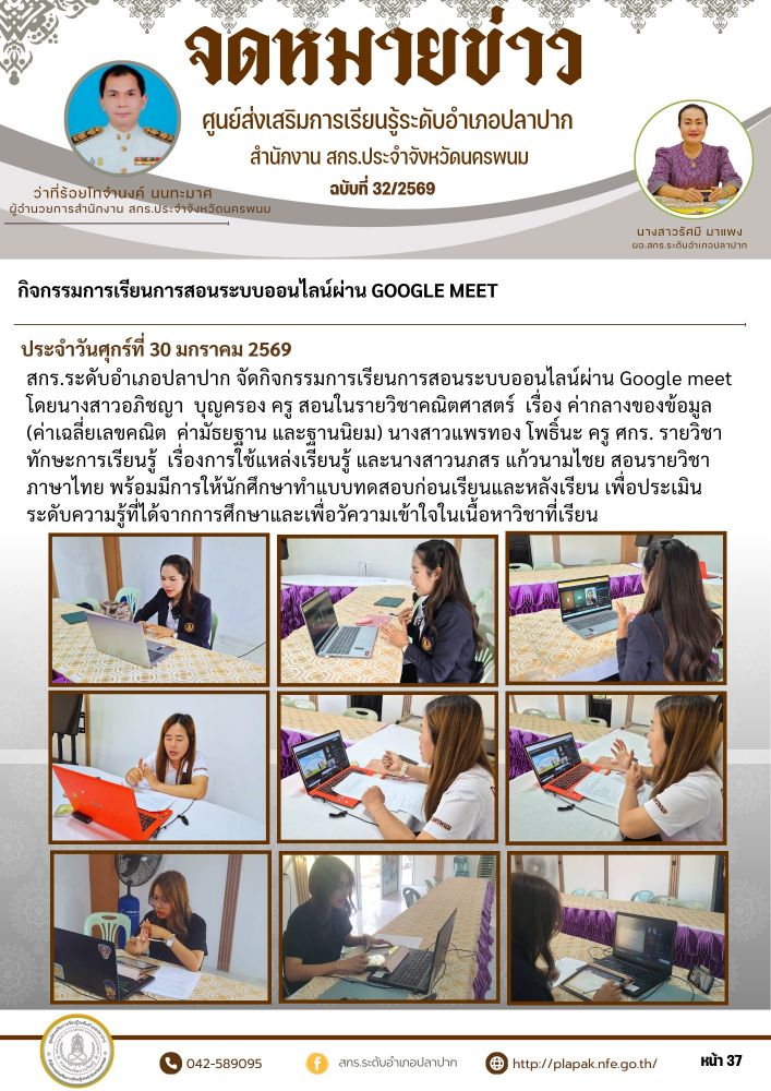 กิจกรรมการเรียนการสอนระบบออนไลน์ผ่าน Google meet