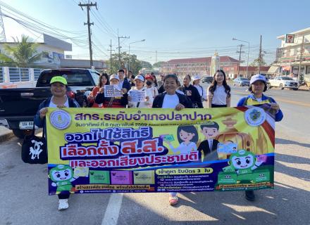 วันที่ 6 กุมภาพันธ์ 2569 สกร.ระดับอำเภอปลาปาก นำโดยนางสาวรัศมี มาแพง ผู้อำนวยการสถานศึกษา สกร.ระดับอำเภอปลาปาก พร้อมด้วยครูและบุคลากร นักศึกษา ศกร.ระดับตำบลทั้ง 8 ตำบล ร่วมจัดโครงการขับเคลื่อนประชาธิปไตยในสถานศึกษา การรณรงค์เลือก ตั้งสมาชิกสภาผู้แทนราษฎร เข้าชม : [8]